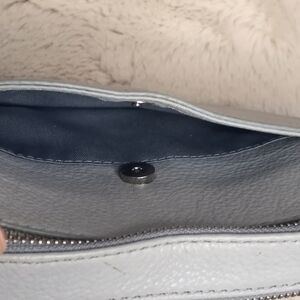 Fossil Vintage Y2K Ice Blue Pastel Leather 2 Compartment Shoulder Bag, with Zippered pockets and Slip Pockets, plus Credit and ID card slip pockets, Versatile, Feminine, Coastal, Nautical, Retro, Tennis Prep, Classic, Casual, Boho, Timeless, Bohemian, Scandi Girl