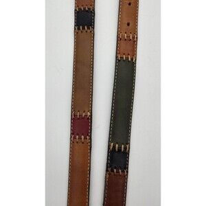 Fossil Patchwork Leather Belt Women Multicolor Brass Buckle Size Large 30-34 in