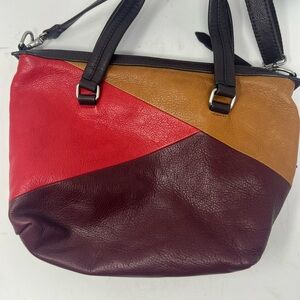 Fossil Patchwork Multicolor Leather Zipper Pocket Satchel Crossbody Bag