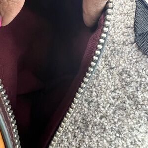 Has mild signs of wear. 1 Marker mark on the inside(may be removable- not sure). Comes with detachable shoulder strap. Please check all pics for measurements and signs of wear. Comment/message if you have questions