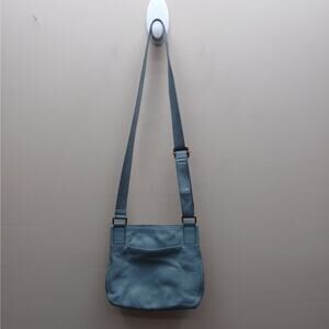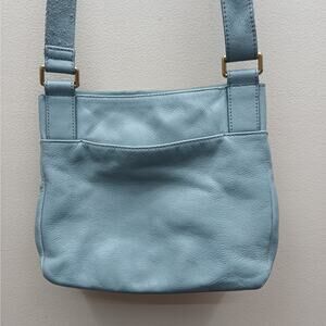 Fossil Pebbled Leather Crossbody Bag Minimalist Adjustable Strap Blue Shopping