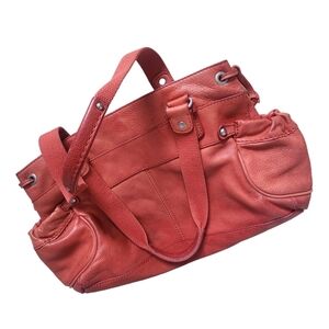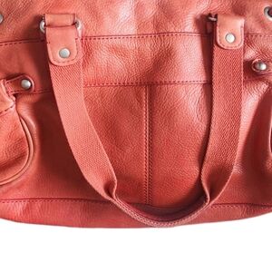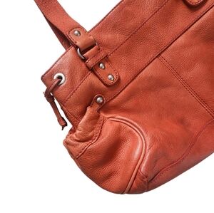 Fossil Pebbled Leather Hobo Shoulder Bag Tangerine Pockets.