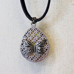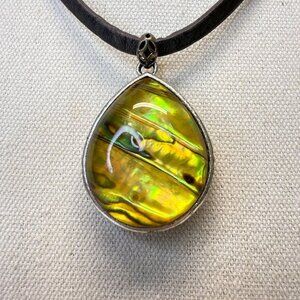 Fossil Pendant Necklace Green Iridescent Reversible Butterfly Leather Cord