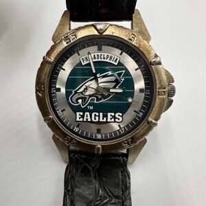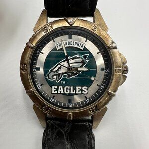 nfl fossil watch, philadelphia eagles watch, eagles mens watch, black leather sports watch, fossil sports watch, silver tone watch, eagles fan gear, nfl team watch, football watch men, collector sports watch, vintage fossil nfl, licensed nfl watch, eagles memorabilia, team logo wristwatch, sports gift for him