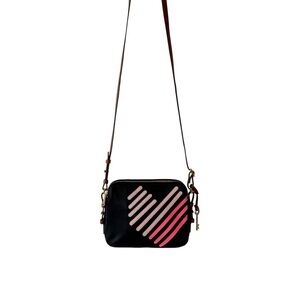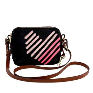 Excellent like-new pre-owned condition. Clean inside and out. Fossil Piper Double Zipper Crossbody in black pebbled leather with a heart shaped design made from pink leather stripes + painted pink stripes. Features 2 roomy zip compartments, adjustable strap, and Fossil’s classic quality. Stylish, durable, and the perfect everyday bag! See pics for details.