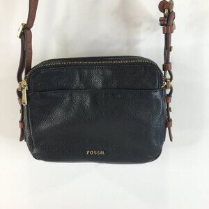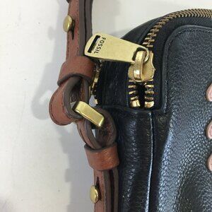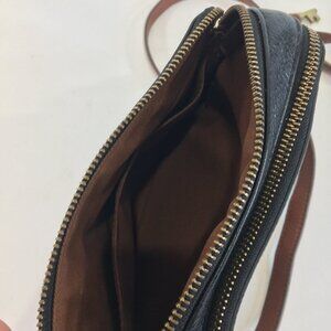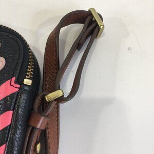 Fossil Piper Double Zipper Black Pink Leather Crossbody