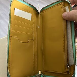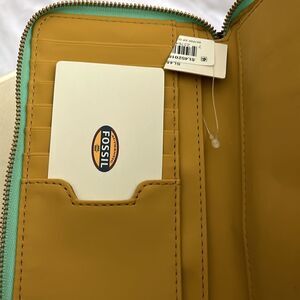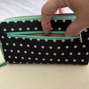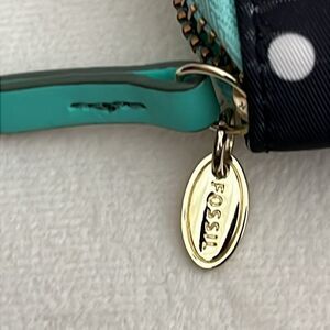 Fossil Polka Dot Zip Around Wallet Navy /White Mint Trim NWT FINAL SALE PRICE!