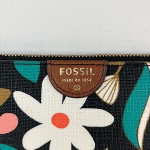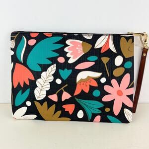 Fossil Pouch Sydney Floral Clutch w Leather Trim Zip Closure