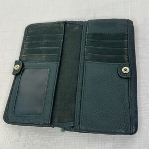 10 card slots, 3 cash slots, 2 large zip pockets, button closure.