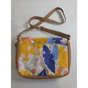 Fossil Preston Flapover Multicolor Floral Canvas Leather Trim Crossbody Handbag