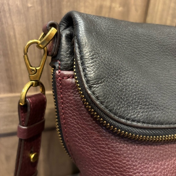 Fossil Preston Foldover Flap Tote Crossbody Messenger Bag Cowhide Leather