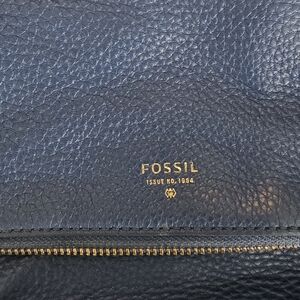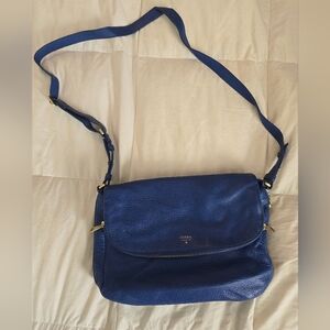Fossil Preston Pebbled Grain Leather Royal Blue Foldover Zippered XBody Handbag