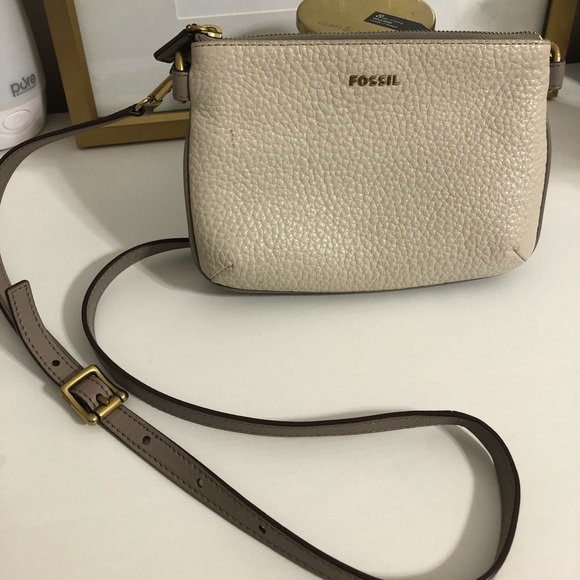 lightly used cream & grey Fossil purse