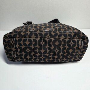 Fossil Purse Brown Black Signature Canvas Tote Shoulder Bag Boho Preppy Travel