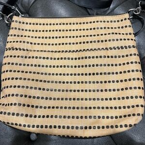 Fossil Purse Tan With Black Accent Crossbody Adjustable Strap