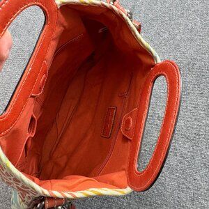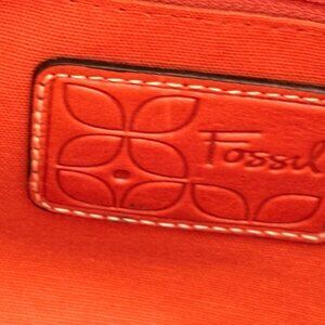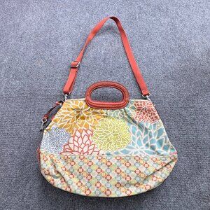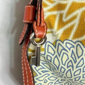 Fossil Purse Womens Floral Canvas Leather Satchel Bag Key Accent Handle Straps