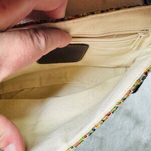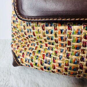 Fossil Classic Weave Purse Multicolored Straw Leather Trim Shoulder Bag