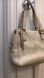 Well loved but lots of life left! New in packaging shoulder strap. Many separate pockets! Zippered pocket, snap pockets. See photos for measurements. Cream Soft leather with a light satin inside fabric so you can See your stuff well!