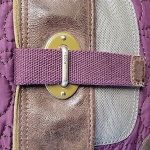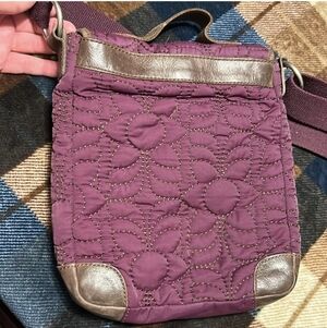 Stylish and functional, this quilted crossbody bag features a rich purple and brown design. Perfect for everyday use, it offers both elegance and practicality. Magnetic closure for hassle free securing. Gently used and in great condition!