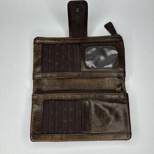 Fossil RARE Long Live Vintage 1954 Bifold Brown Lamb Hide Leather Top Zip Wallet