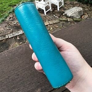 This leather wallet features four credit card slots, two gusseted pockets and one note compartment.