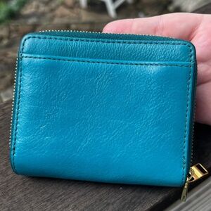 Fossil RFID Mini Multifunction in Peacock Genuine Cow Hide Leather Double Zip