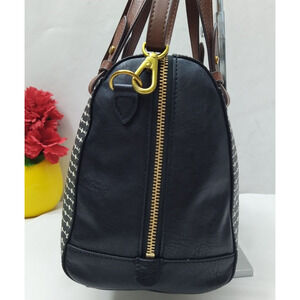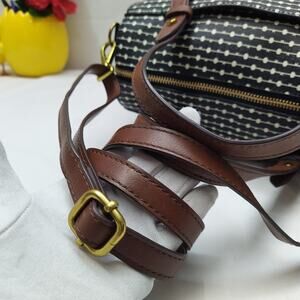 Fossil Rachel Black Coated Canvas Leather Trim Polka Dot Zipper Satchel Bag