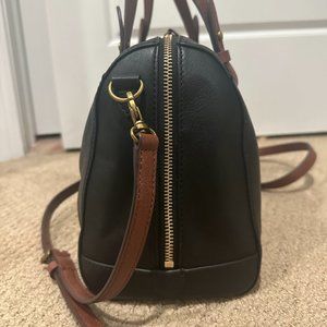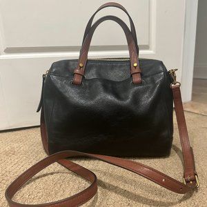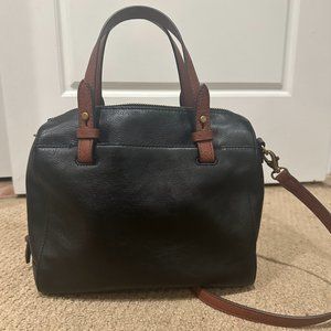 Fossil Rachel Satchel in smooth, black leather. Gently used, in excellent condition. From Fossil's Website: Product Details Sku: ZB7256001 Device Compatibility: Fits up to an iPhone® 14 Pro Max and Samsung Galaxy S22 Ultra®, iPad® Air Material: LiteHide™ Leather/Polyurethane Trim Interior Material: Recycled Polyester Interior Details: 1 Zipper Pocket, 2 Slide Pockets Measurements: 10"L x 5.75"W x 8"H Silhouette: Satchel Handle Strap Description: 1 Adjustable & Detachable Crossbody Strap, 2 Handles Platform: RACHEL Primary Color: Black Hardware: Gold Tone Grab Drop: 4.5" Handles Shoulder Drop: 23.5" Strap When Fully Extended Exterior Details: 2 Slide Pockets Closure: Zipper
