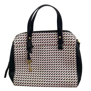 Fossil Rachel Satchel Houndstooth Handbag Brown Cream LIKE NEW
