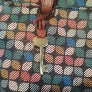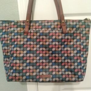Fossil Rachel Zip PVC Tote Shoulder Bag Multicolor Geometric Print Key Charm