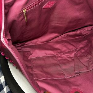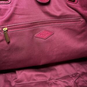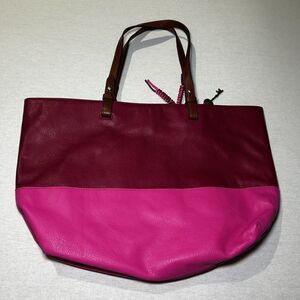 Fossil Rachel tote bag in a raspberry wine and hot pink color-block leather