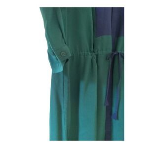 Gorgeous brand new Fossil silk shirtdress in a stunning green and navy colorblock design! This sophisticated piece features hidden front buttons and a drawstring waist tie for the perfect cinched silhouette. The luxurious 100% silk fabric drapes beautifully and feels amazing against the skin. Perfect for work, date nights, or any occasion where you want to look effortlessly chic.