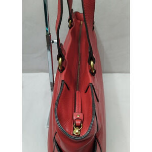 Fossil Red Leather Double Handles Zipper Closure Tote Shoulder Bag