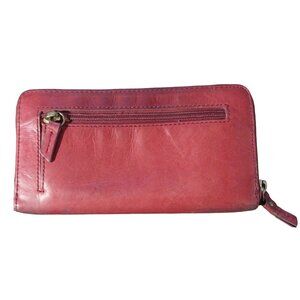 Fossil Red Leather Zip Wallet With Card Slots & Coin Pocket Preppy Classic Money
