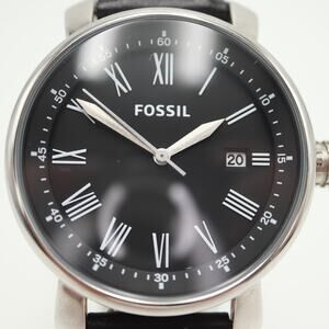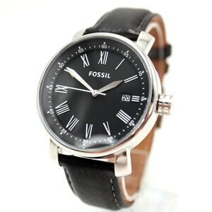 Fossil Rhett Mens Black Roman Date 42mm Watch BW1015 Black Leather w New Battery