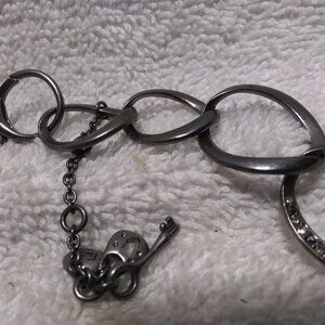 Up for sale is a Fossil Rhinestone Filled Dark Chain Necklace Large Links Great Condition