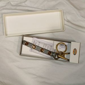NWT Fossil Rhinestone Keychain in Mushroom. Has a clip and key ring.