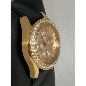 Fossil Riley ES2811 Women Black Leather Rose Gold Analog Dial Quartz Watch RK410