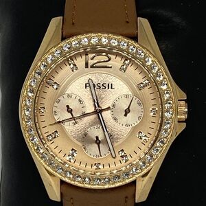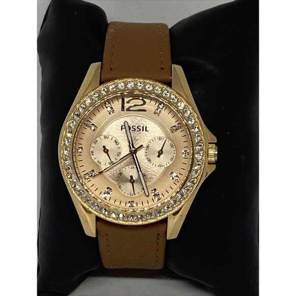 Fossil Riley ES2811 Women's Brown Leather Analog Dial Quartz Wrist Watch OP797