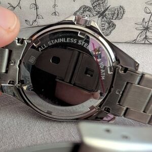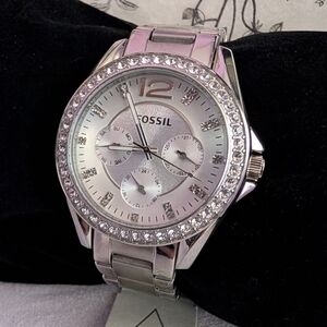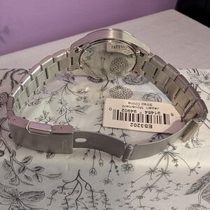 "Our shimmering Riley watch adds sparkle to the season. Brilliant stainless steel and a dazzling crystal dial will ensure that you stand out. This Riley watch also features a multifunction movement on a stainless steel bracelet."