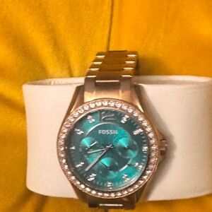 Fossil Riley Rose Gold Ladies Teal Multifunctional Dial Watch
