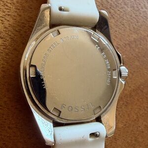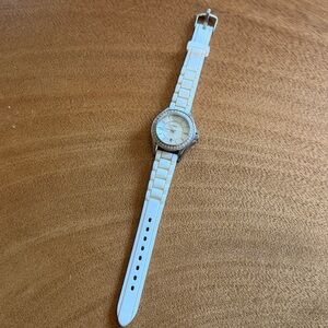 Fossil Riley Silicone watch. Silicone white band with accented cubic zirconia and silver metal. *Needs a new battery*
