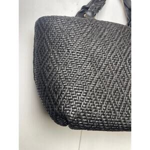 Fossil Satchel Woven Black Leather Top Handle Old Money Classic Shoulder Bag