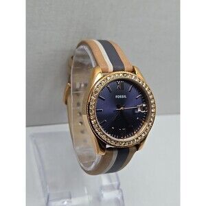 Fossil Scarlette Mini ES4594 Rose Gold Blue Dial Leather Watch New Battery Small