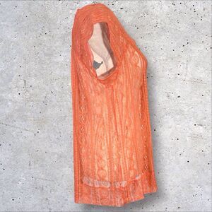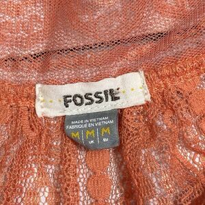 Fossil Sheer Lace Coquette Top V Neck Y2K Boho Fairy Womens Medium Orange
