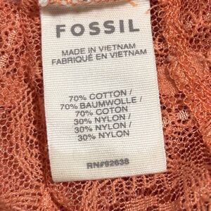 Fossil Sheer Lace Coquette Top V Neck Y2K Boho Fairy Womens’s Medium Orange
