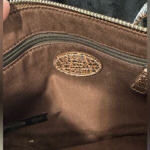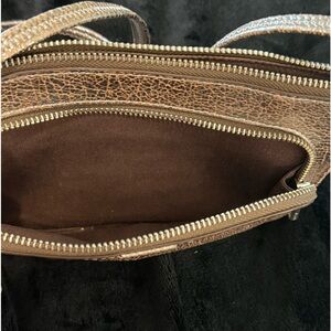 Fossil Shoulder Bags Brown Leather Metallic Silver Crackle Finish