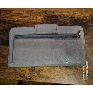 Fossil Sidney Tab Clutch Wallet Smoky Blue Leather Snap Zip Coin Purse Card