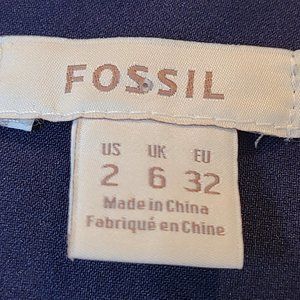 Fossil silk dress in blue stripes. Good pre-owned condition, small mark on the front, pictured.