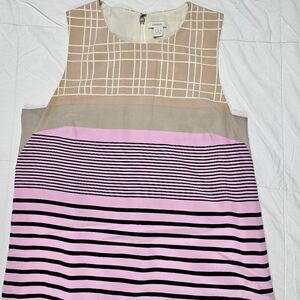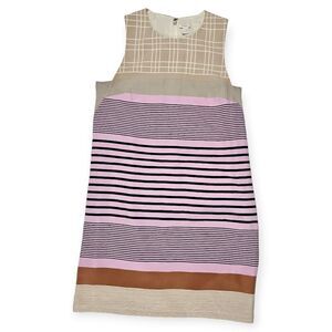 Fossil Silk Tan and Pink Striped Sleeveless Midi Dress Women's Size 6